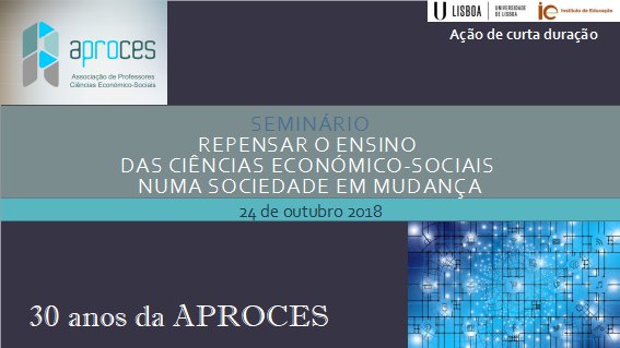 No dia 24 de outubro de 2018 a APROCES promoveu o Seminário “Repensar o Ensino das Ciências Económico-Sociais numa Sociedade em Mudança”, acreditado como ação de curta duração.
